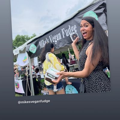 Mike’s Vegan Fudge has traveled the globe. Do you recognize anyone holding small batch fudge hand made fudge ?
